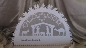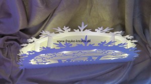 Und passend zur Winterzeit bzw. Weihnachten wurde es ein Schwibbogen aus Papier mit LED Beleuchtung. Hergestellt wurde er dem Schneideplotter Silhouette Cameo und der Silhouette Software.